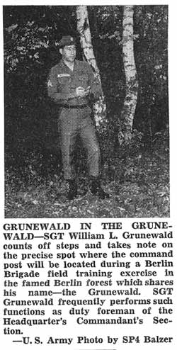 He also sets up the forward command post for the field training exercises which the U.S. Army conducts in Berlin. And that’s what brings him in contact with his namesake. The Grunewald – a beautiful woods smack in the middle of a bustling city – has brought him “quite a few comments,” he muses.
